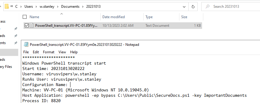 To answer this, we can look at the logs of the commands executed by PowerShell on the machine: