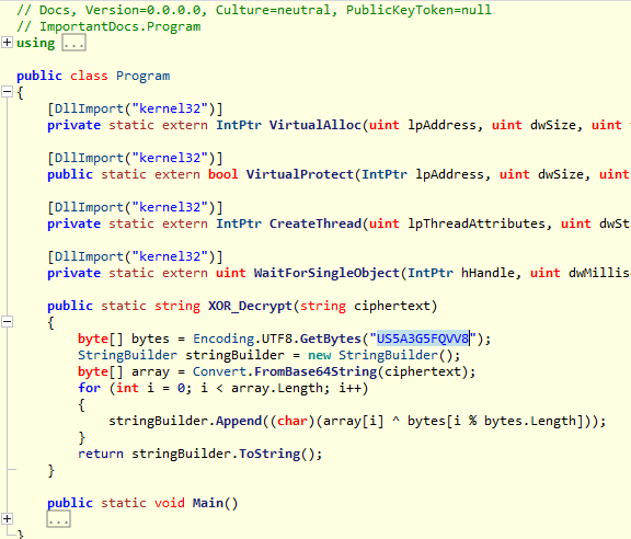 Docs.exeQuestion 16 - Identify the key (in UTF8) in the .NET binary that is used to decrypt the payload from the previous question